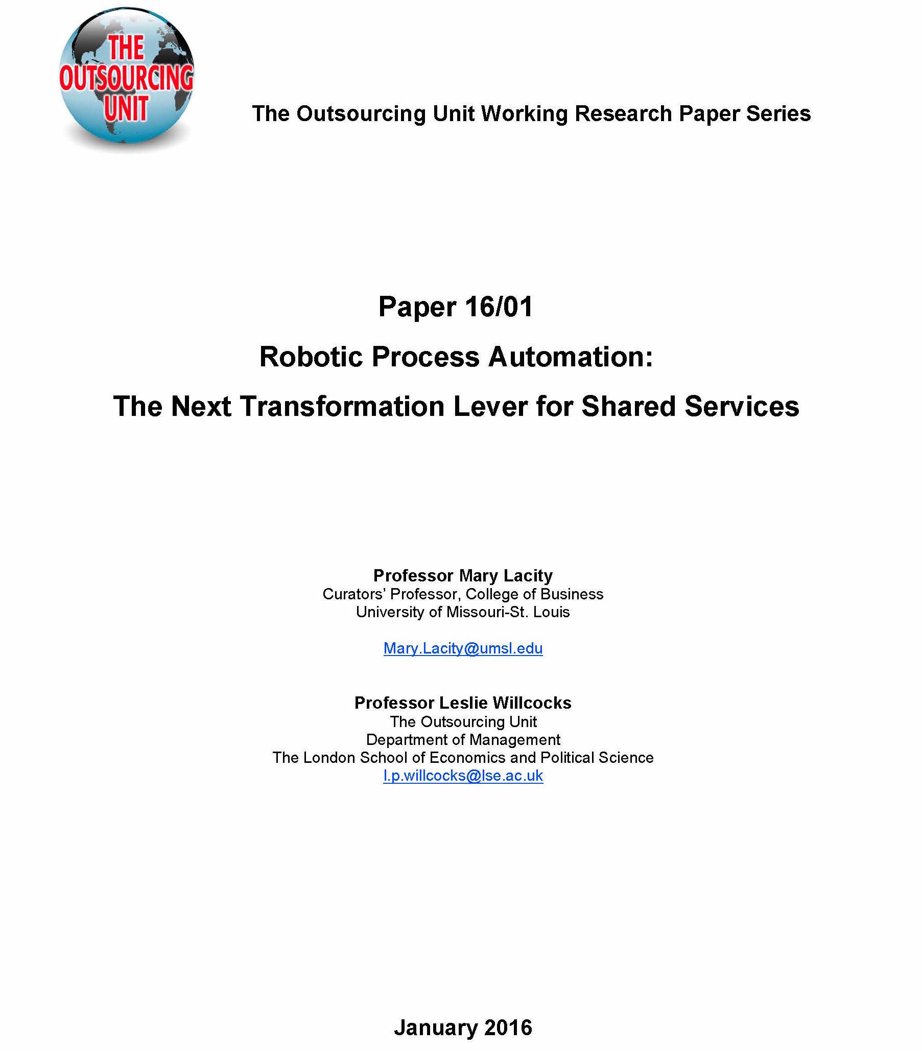 The Outsourcing Unit Working Research Paper Series Paper 16/01 2016